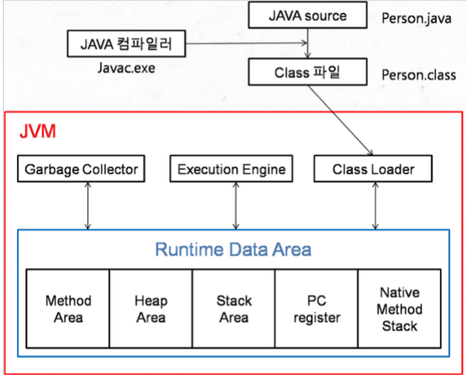 - java에서는 class 코드들은 바이트 코드이다. ( c언어에서는 바로 기계어로 바뀐다 )
