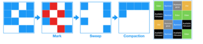 - Mark : Old 영역을 region별로 나누고 region별 자주 참조되는 객체들을 식별(mark)한다