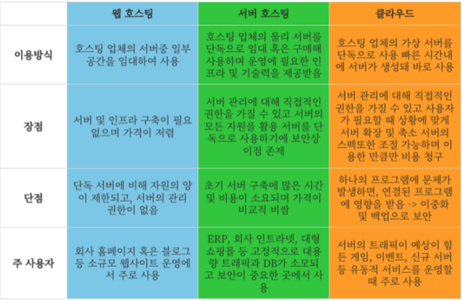 웹 호스팅 vs 서버 호스팅 vs 클라우드