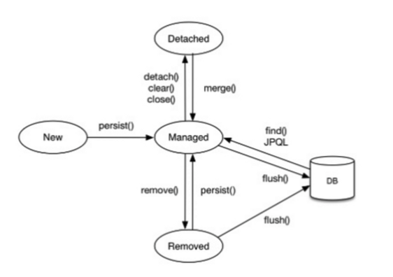 - 영속 : 영속성 컨텍스트에 저장된 상태 ( 영속성 컨텍스트에 의해서 관리 받는 상태 )