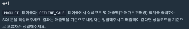 상품별 오프라인 매출 구하기 배운 점