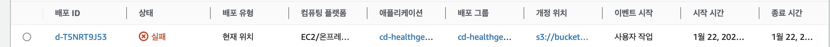 배포 실패 해당 배포 ID 를 들어가면