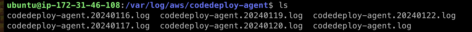 5. 이동해서 ls 명령어를 쳐보면 codedeploy-agent.log가 있을겁니다