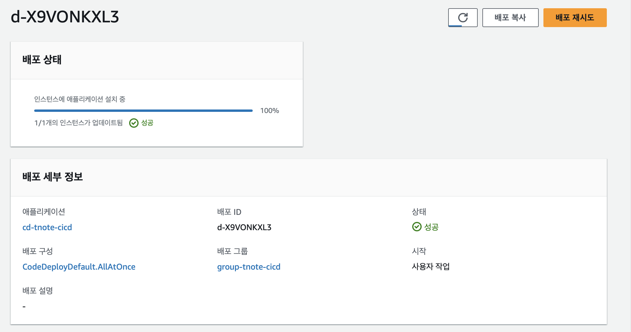 github action이 성공적으로 빌드가 되며, aws에서 code deploy가 성공적으로 실행이 되었는지 확인중 에러가 발생했다.