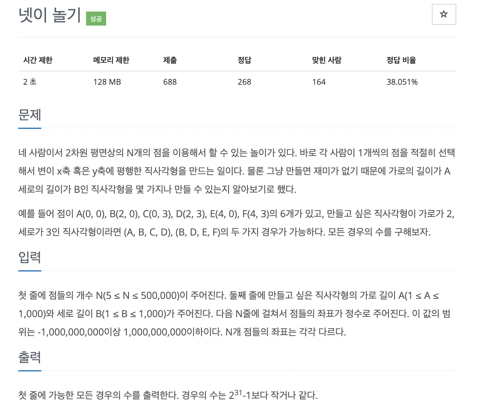[알고리즘] 백준 - 2121 넷이 놀기알고리즘 2022. 8. 15. 16:55728x90