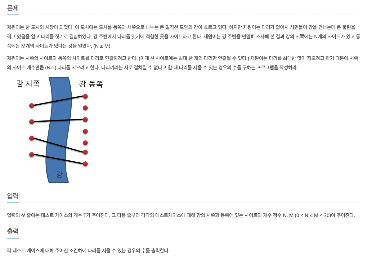 다리 놓기 https://www.acmicpc.net/problem/1010